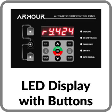 CONTACTOR BASED PANELS — THREE PHASE (STAR DELTA)The ARMOUR Model E—Premium is a robust, contactor-based control panel for up to 3 Single Phase pumps, equipped with the advanced ARMOUR Pump Logic Controller that automates, operates, and protects the pumps. It also features indication lamps, MCBs, overload relays, and a standard enclosure and helps save water and electricity by preventing dry running, overflow, and unnecessary operation.